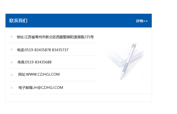 地址:常州市新北區友邦商務大廈1幢16、17層  電話:0519-85101652  傳真:0519-85112595  郵編:213022  網址:www.cz-jiayue_cn.dbhmjj.com  郵箱:xiajifengaa@163.com